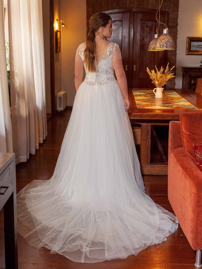 Available in sizes 46–54 EU (14–22 US), this collection is exclusively for plus-size brides. If you love a design from another Papilio collection, custom sizing is available by appointment.
