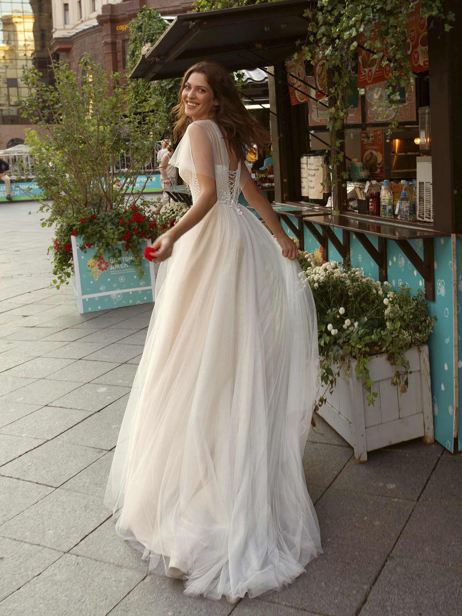 Inspired by the energy and elegance of a megalopolis, the Cosmopolitan City collection blends contemporary fashion trends with timeless bridal aesthetics. The dresses feature clean and simple silhouettes, flowy chiffon skirts, and charming cutouts that add a touch of romance. Light, playful details and airy fabrics make these gowns comfortable and chic, ensuring brides feel at ease on their special day.