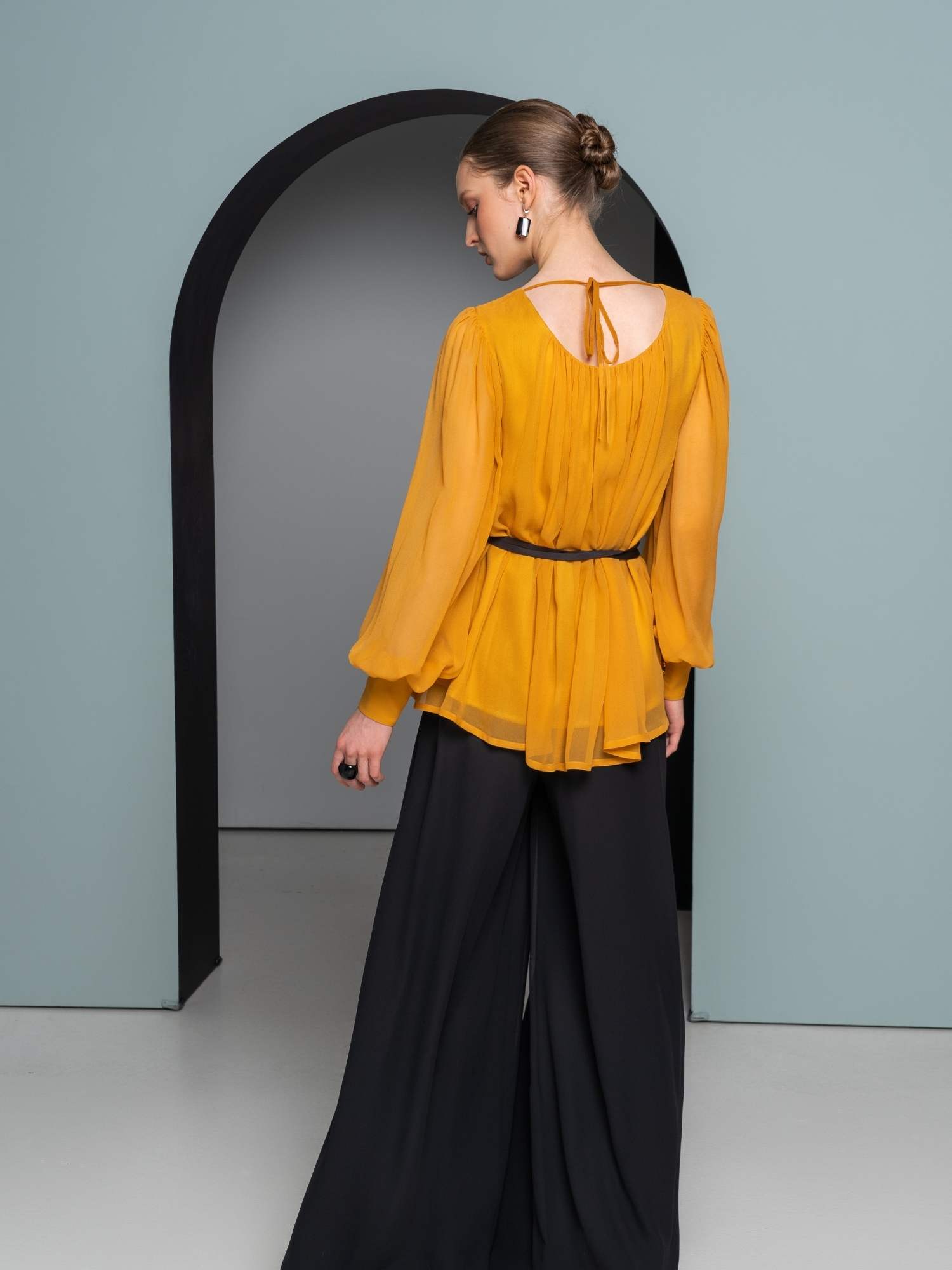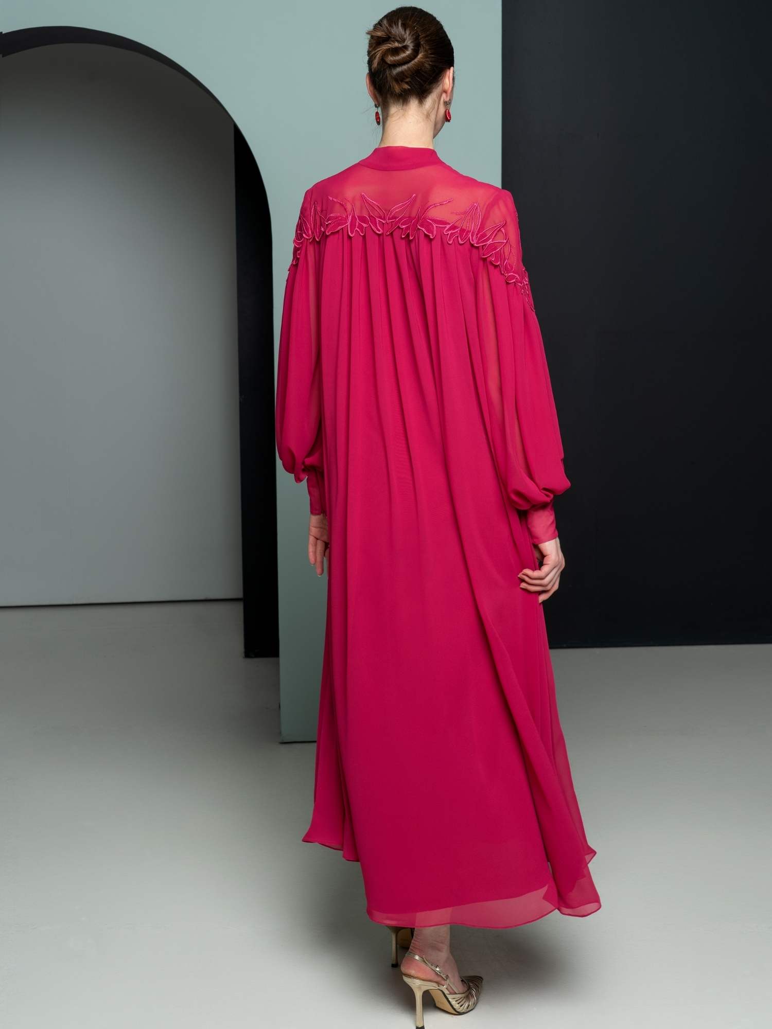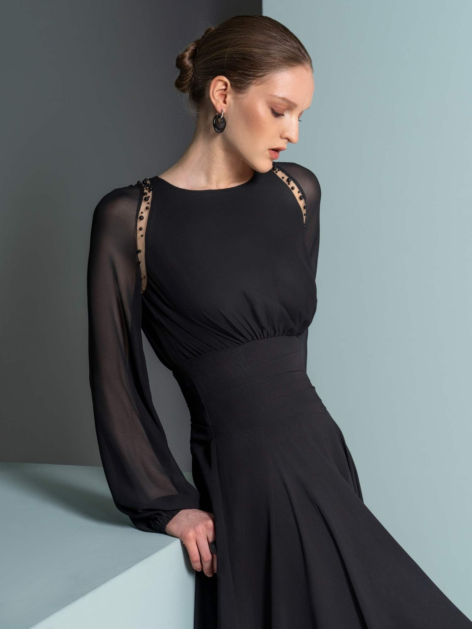 Flowing dress with detailed long sleeves | Color: berry, purple, sea green, cherry, grey-blue, azure, black, smoky, mint, powder, cornflower, red, green, watermelon, light-green, ivory