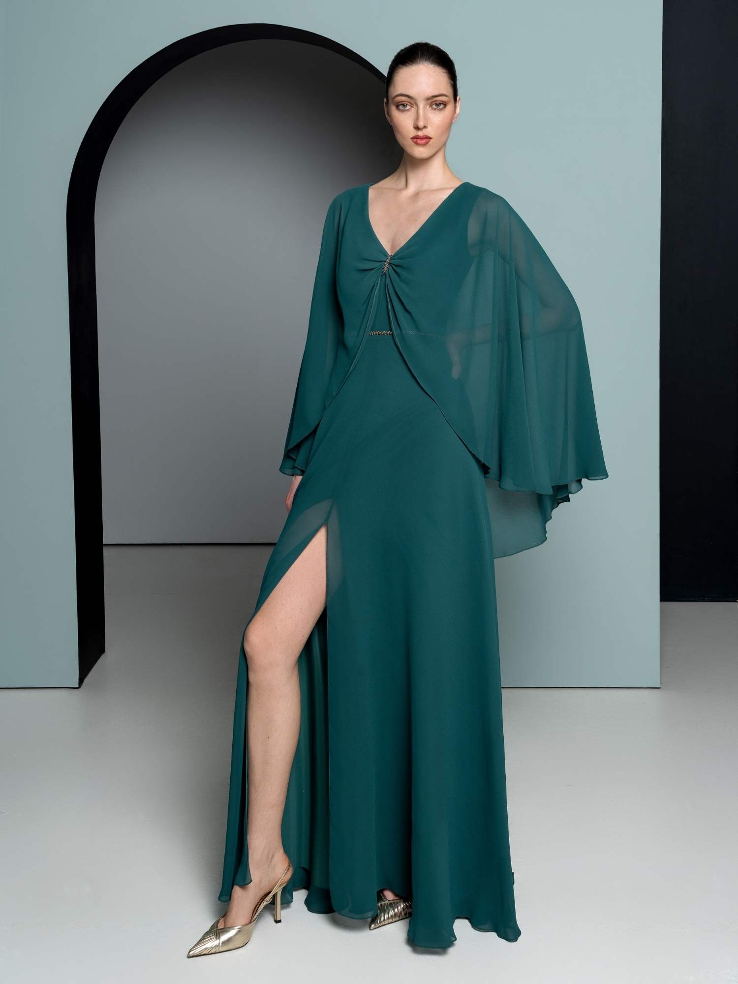 Chiffon dress with cape sleeves | Color: green, powder, purple, grey-blue, light-green, ivory | comes in midi or maxi length
